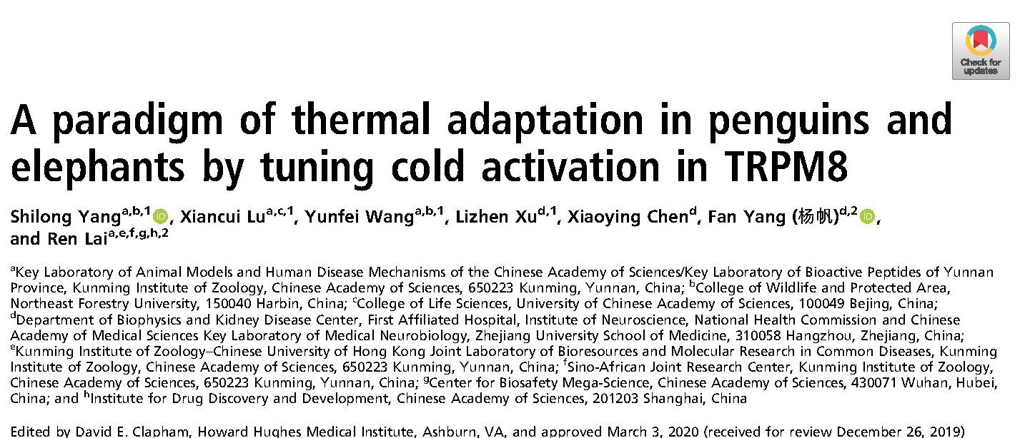 3月28日,美国科学院院刊《Proceedings of the National Academy of Sciences of the United States of America》发表了我校野生动物与自然保护地学院杨仕隆教授研究团队的题为“A paradigm of thermal adaptation in penguins and elephants by tuning cold activation in TRPM8”的研究论文(图1),该研究揭示了TRPM8对低温的感受机制以及动物对环境温度的适应机制。图1.论文题目及作者截图太阳的红外辐射为地球上的所有生命...