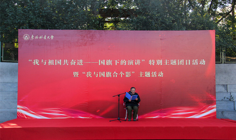两位共和国同龄人、学校离退休教师代表丁宝永、邹海琦在国旗下讲授主题微团课。丁宝永老师是我校帽儿山实验林场的开拓者之一,他简要回顾了我校“建校伊始,创业维艰”的发展历史,强调了艰辛建设的背后是一代代师生共同努力的结果,激励青年学生珍惜韶华、努力学习、报效祖国。邹海琦老师勉励同学们以科学认知态度培养自身学习能力,树立科学的人生观和价值观,建议青年学生积极响应时代号召,履行义务,承担责任,“不负伟大时代,挂云帆,踏万古江河;济沧海,铸不朽人生!”