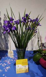 王玲教授课题组参展的作品主有四项,包括培育的溪荪鸢尾新品种‘含蓄’和‘婷蝶’切花,以溪荪新品种‘迷你粉’为主的组合盆栽,和以石斛兰和常春藤为主要材料的水晶干燥花组合花艺创作作品。