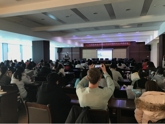 11月29日,经济管理学院2017年研究生学术论坛成功举办。8时30分,学术论坛在成栋楼1126室举行了开幕式。论坛开幕式由2015级林业经济管理专业硕士研究生任月主持,经济管理学院副院长王玉芳教授致辞。经济管理学院副院长耿玉德教授、王玉芳教授以及相关学科负责人、硕博研究生、留学生同学出席了开幕式。