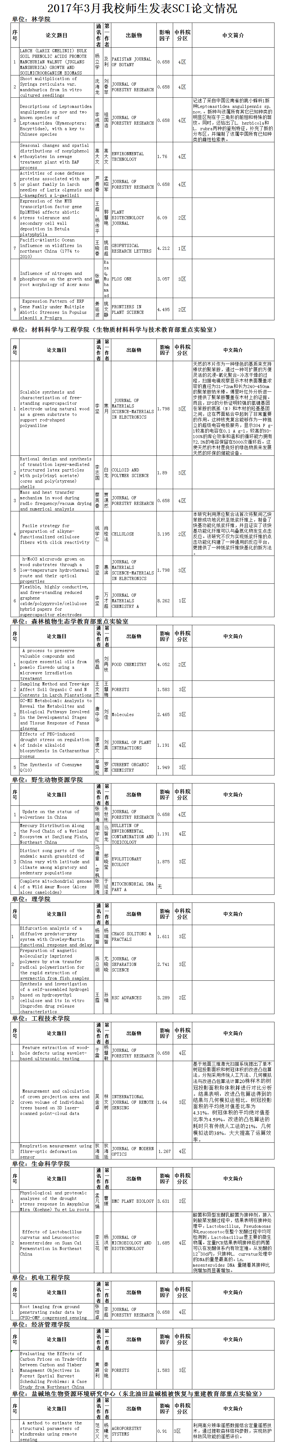 2017年3月,我校师生以“星空游戏免费版下载”为第一署名单位发表SCI论文35篇。其中林学院9篇、材料科学与工程学院(生物质材料科学与技术教育部重点实验室)6篇、森林生态教育部重点实验室5篇。