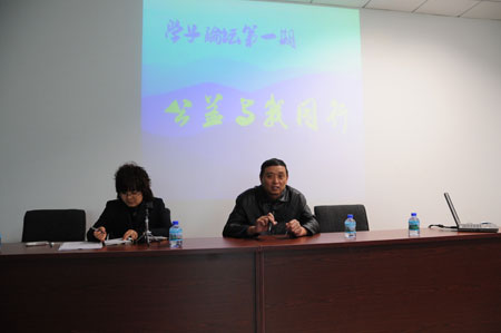 2010年5月8日14:30,学子论坛启动仪式暨第一期“公益与我同行”在图书馆B005室如期举行,会场座无虚席。活动由图书馆业务推广部李秋玲老师主持,应邀参加仪式的有图书馆党总支书记林希森及来自哈尔滨市各高校的志愿者团队嘉宾。