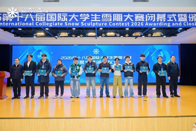 朔风凝艺骨,瑞雪赋华章。日前,第十八届国际大学生雪雕大赛在哈尔滨工程大学圆满收官,我校家居与艺术设计学院参赛团队凭借作品《万物拟态》在全球40多所高校的巅峰对决中脱颖而出,荣获国际一等奖。