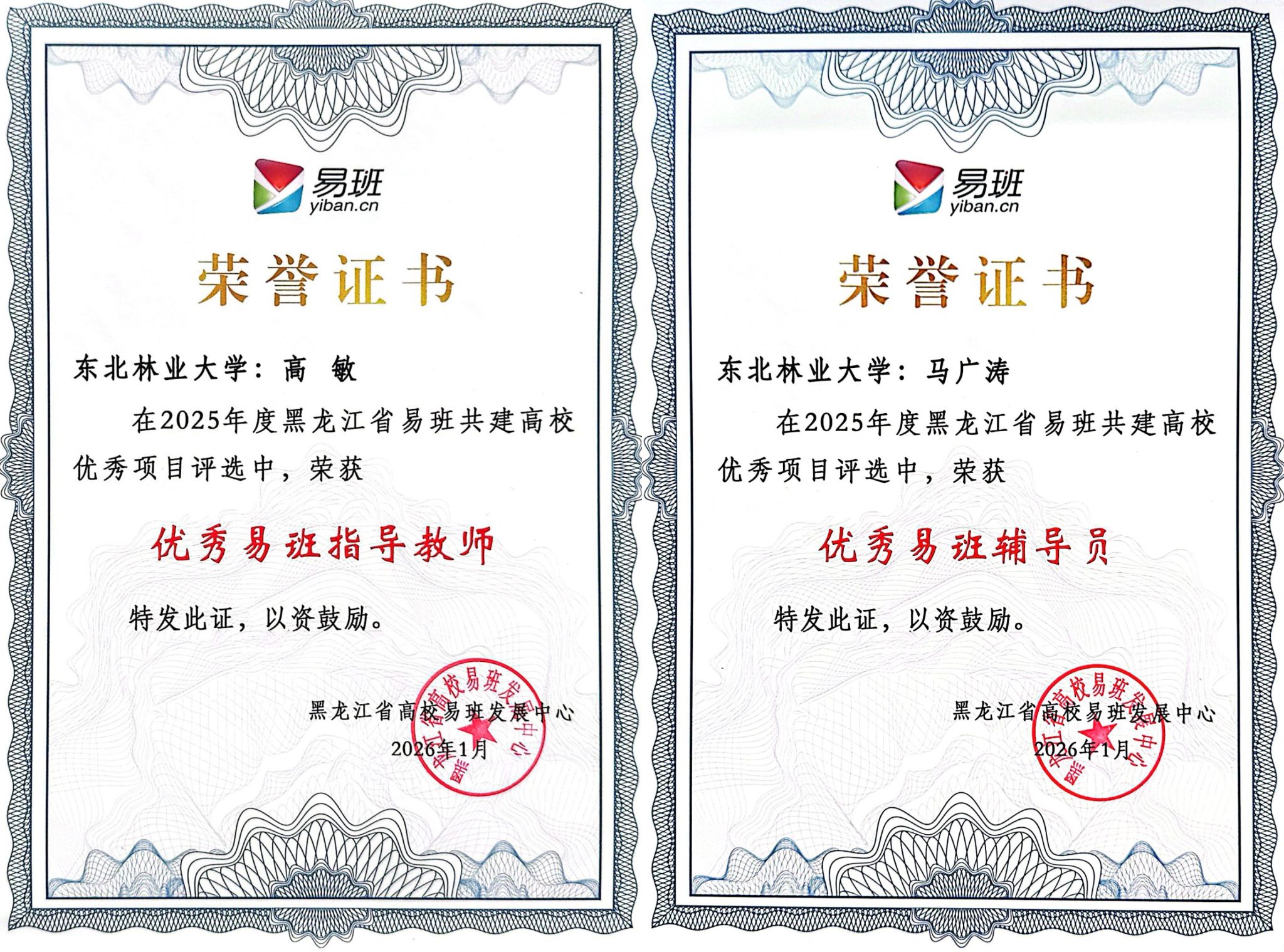 此外,学校易班工作队伍表现亮眼,高敏老师、马广涛老师分别获评“黑龙江省高校优秀易班指导教师”与“黑龙江省高校优秀易班辅导员”荣誉称号。