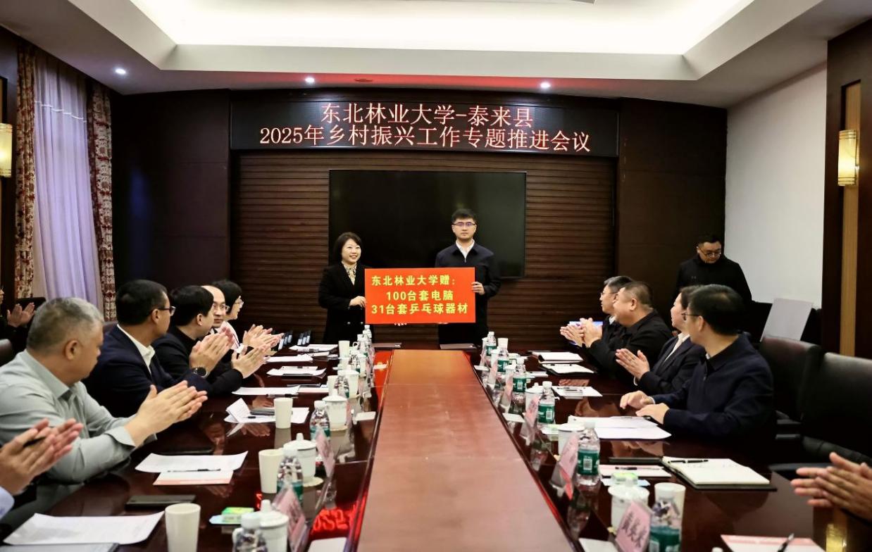 会上,于海鹏代表学校向泰来县捐赠乡村振兴项目培育和乡村教育事业发展援建资金;经济管理学院党委书记兼乡村振兴办公室主任付晓东代表学校与泰来县签订帮扶物资捐赠协议;计算机与控制工程学院党委书记钟蕾代表学校向泰来县捐赠电脑、乒乓球桌等帮扶物资,进一步助力泰来县乡村振兴项目培育和教育基础设施的提升。学校科学技术研究院执行院长何念鹏详细介绍了泰来生态综合观测研究站规划情况。