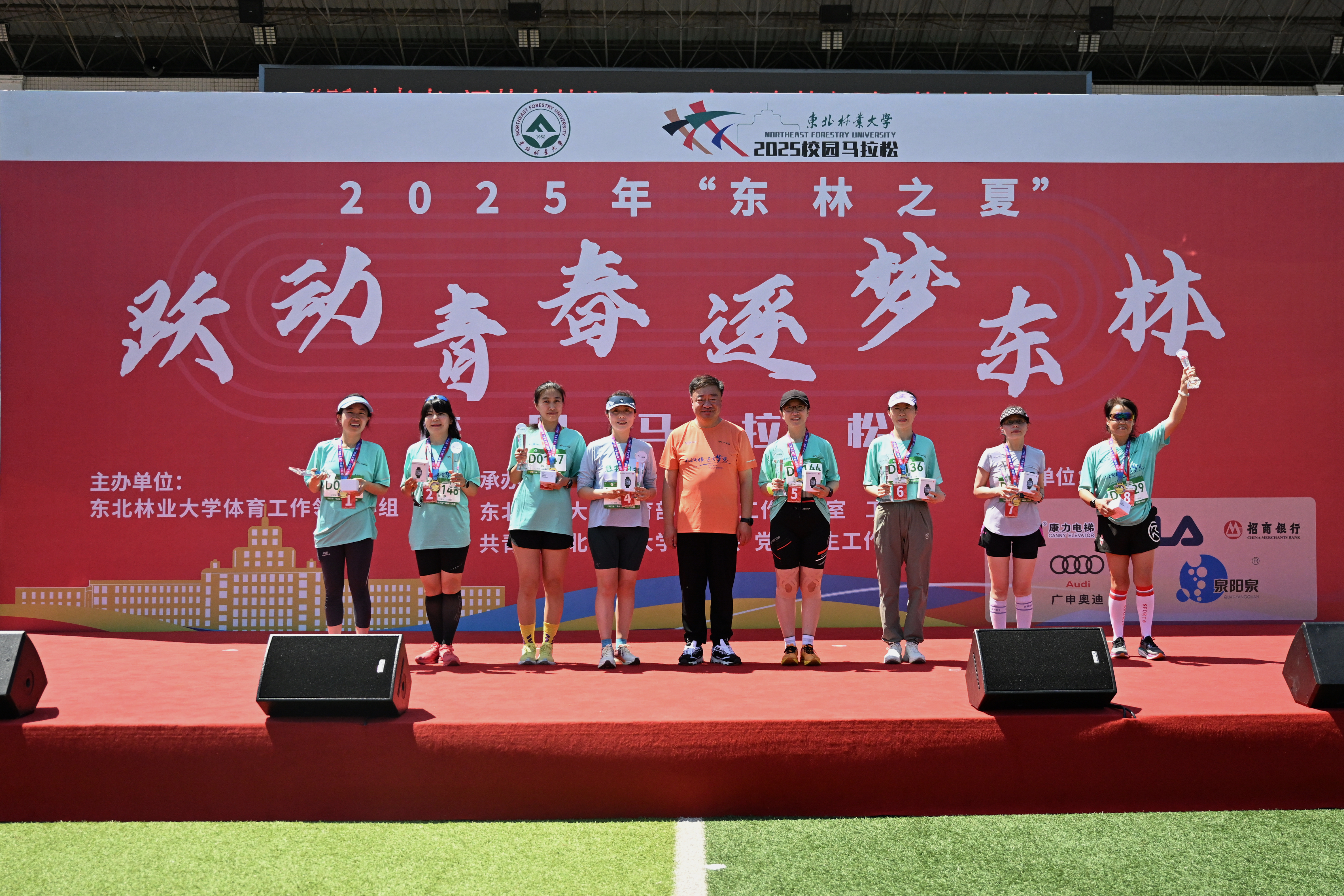 宋文龙为竞速赛校友组前八名颁奖