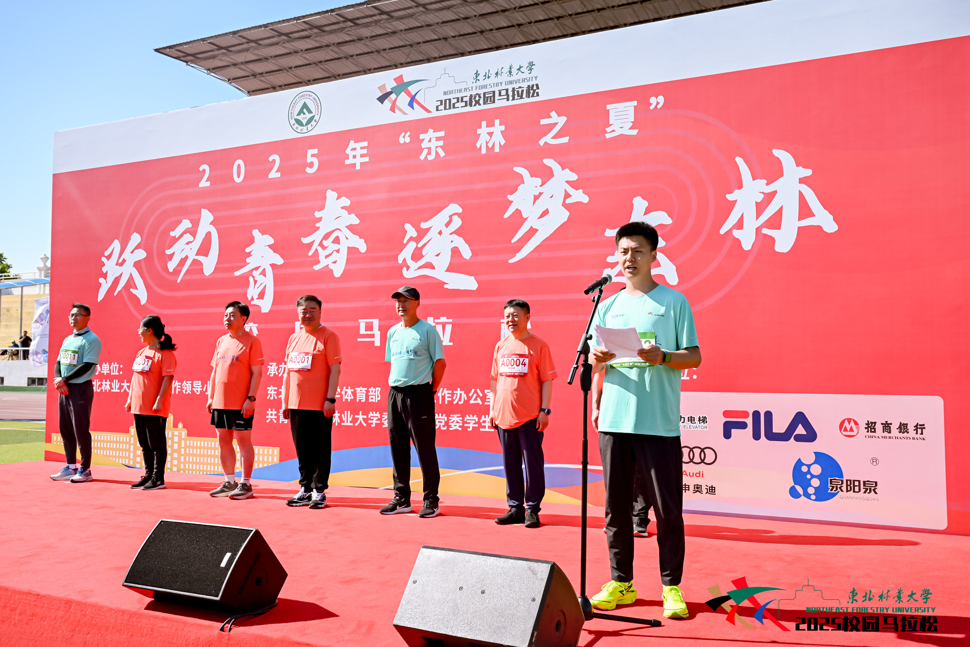 校长宋文龙致开幕词。他指出,自去年首届校园马拉松赛开赛以来,活动在广大师生和校友中取得了热烈反响,深受大家喜爱。他强调,作为一所积极贯彻落实教育强国建设、生态文明建设、美丽中国建设战略的林业高校,完善立德树人机制、健全德智体美劳全面培养体系是学校的一项重要任务。本次比赛也是学校践行“五育并举”育人理念的生动实践,希望大家在参赛中磨砺尊重规则、热爱集体、乐观向上、永不言败的精神品质,充分感受体育运动带来的快乐和魅力,用汗水诠释体育精神。