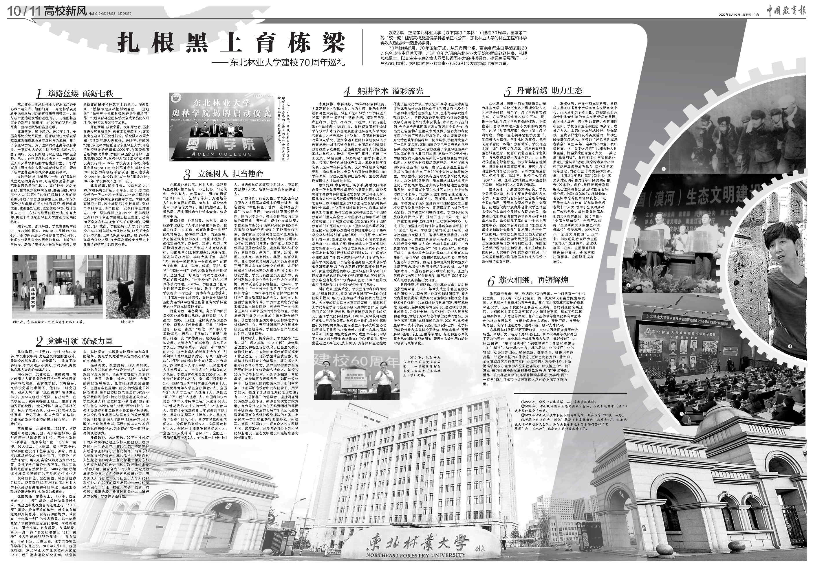 2022年6月10日,《中国教育报》两版篇幅刊发学校70年成就巡礼