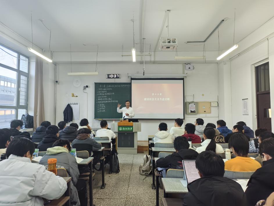 校长宋文龙在《习近平新时代中国特色社会主义思想概论》课堂,讲授《建设社会主义生态文明》的思想政治理论课
