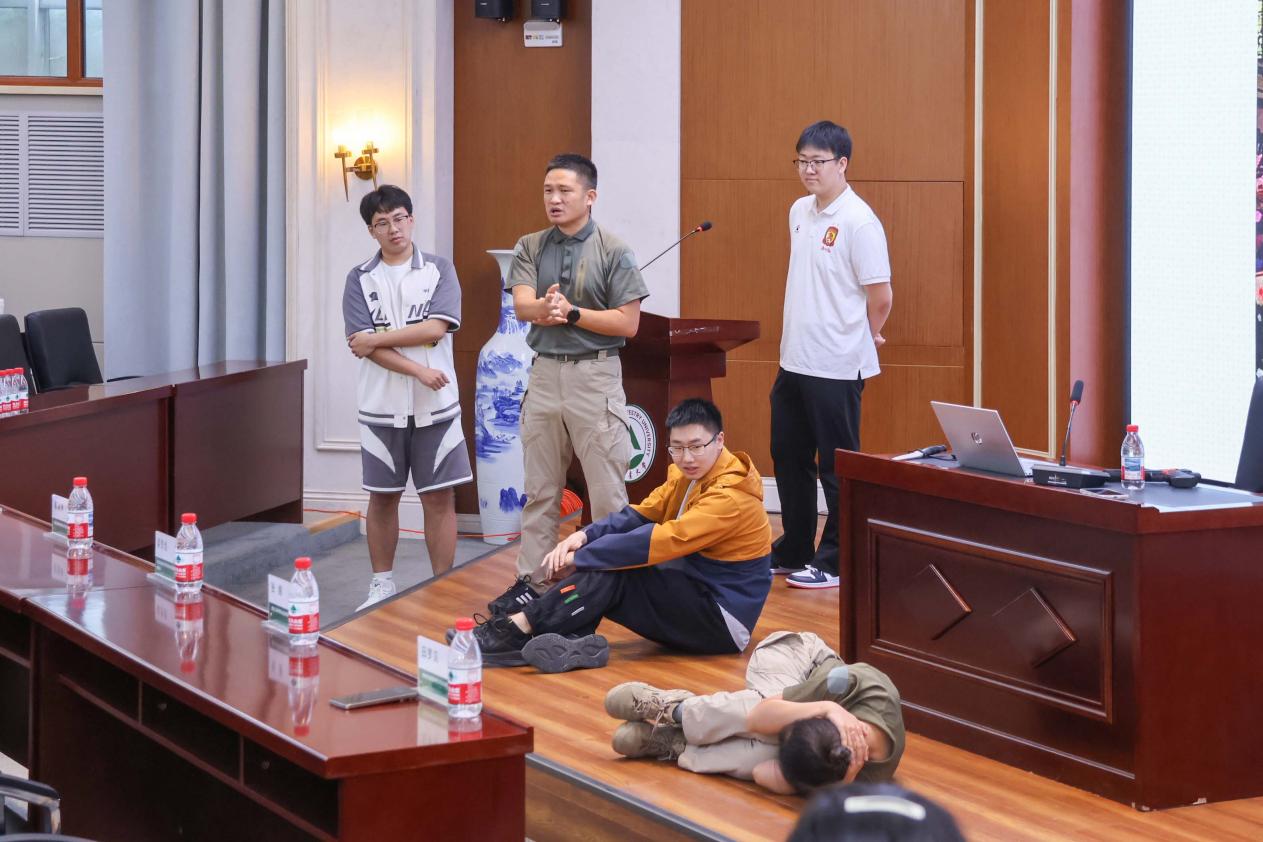 德威控股集团有限公司资深安保教官田罗见、蔡瑞坤以“出国留学行前安全教育:海外安全应急技能提升”为主题,进行了系统且生动的讲解与指导。两位教官不仅从理论层面阐述了安全意识的重要性、安全防范技能要点,还针对常见安全风险,详细讲解了自救互救技巧,并带领同学们开展实操演练,让大家在实践中切实掌握应对海外突发状况的能力。