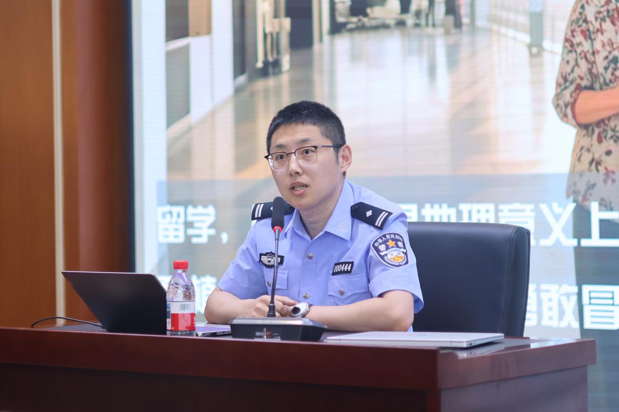 黑龙江省公安厅刑侦总队电诈犯罪防范支队支队长梁思佳带来了题为“跨境求学防诈必修课:从套路识别到应急突围”的精彩讲座。他深入剖析了留学诈骗中常见的六种套路,如虚假奖学金诈骗、冒充使领馆诈骗等,同时传授了五种实用的防骗方法,提醒同学们保持理性思维,提升独立解决问题的能力,筑牢防诈“安全网”。