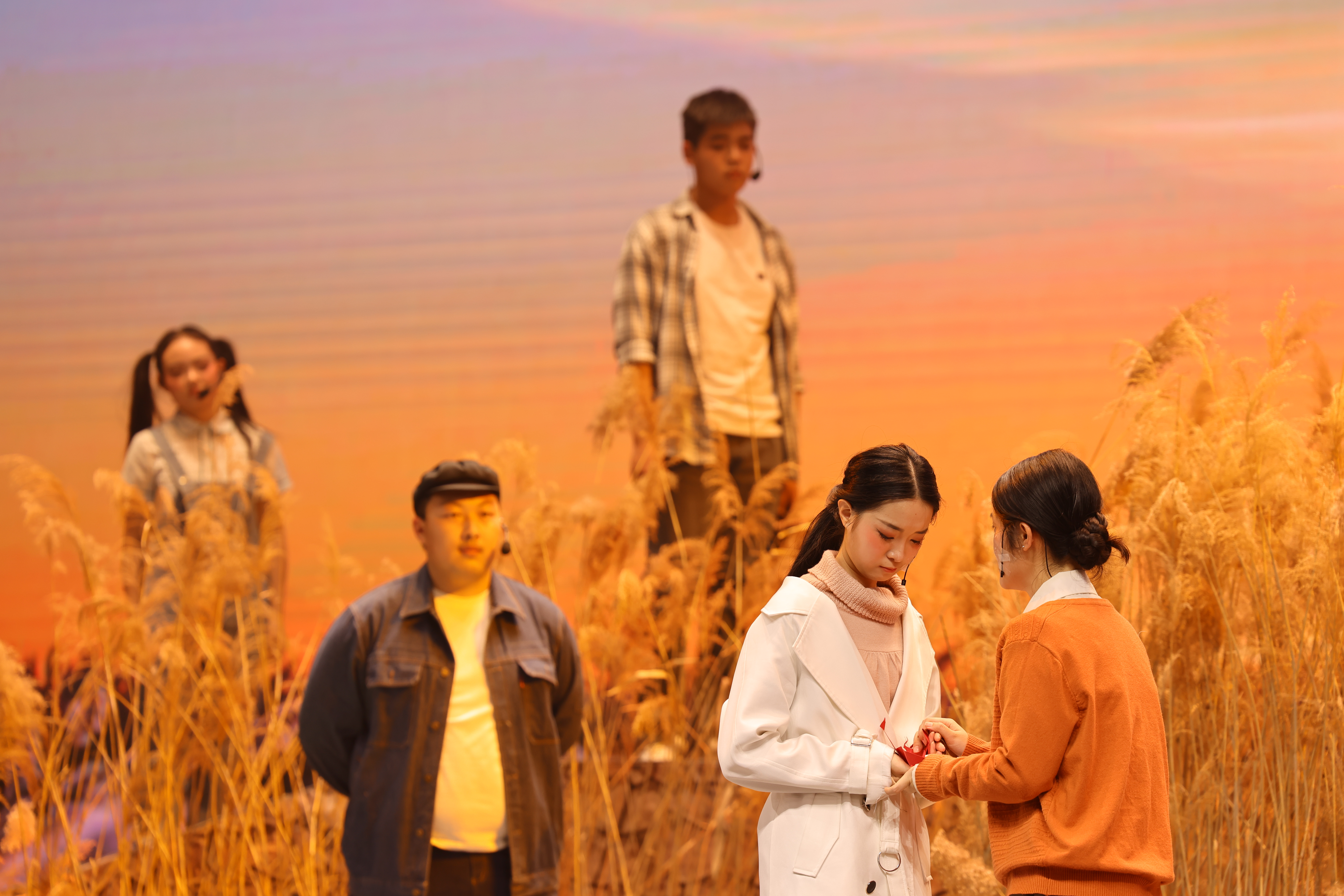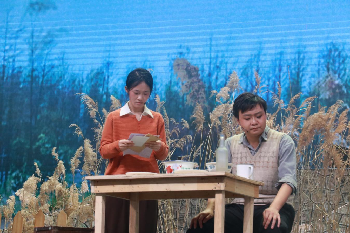 走过那条小河,你可曾听说……”随着空灵的《一个真实的故事》乐曲声响起,演出正式开始。舞台上,闪电与呐喊交织,“娟子”与丹顶鹤的身影在光影中若隐若现;舞台下,师生们为“娟子”省吃俭用啃硬馒头的坚韧品质落泪,为“大毛子”声嘶力竭的惨叫情景哽咽,为“娟子”在泥泞沼泽中缓缓倒下悲痛万分……精致的舞美设计将湿地生态与人文情怀完美呈现,金色的灯光与群鹤飞舞的场景交相辉映,扣人心弦的剧情与演员的精湛演绎深度融合,现场观众沉浸其中、心随剧动,共同在这堂生动的思政大课中受感动、被感染。