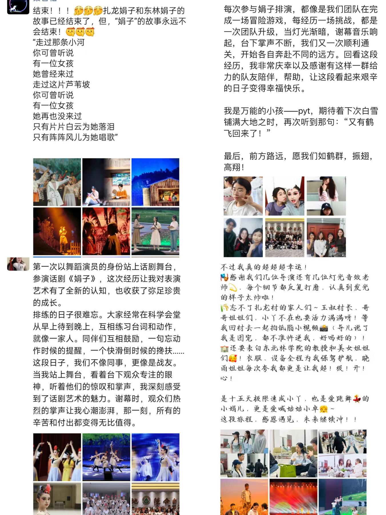 演出在全场师生经久不息的掌声中圆满落幕,参演学生和现场师生纷纷表示,意犹未尽,催人奋进。“娟子”饰演者、文法学院2024级本科生秦晋怡含泪说到:“演出中,我仿佛与‘娟子’融为一体,我被观众的感同身受深深激励着,真心希望那美丽的仙子永远留在人间,我们共同守护人类的美好家园。”“徐秀娟学姐对自然的敬畏、对科研的执着,正是东林人代代相传的宝贵精神基因,我会接稳接力棒,传承好东林精神,做一个心中有信仰,脚下有力量的东林青年。”野生动物与自然保护地学院2022级本科生祁璐激动地说。