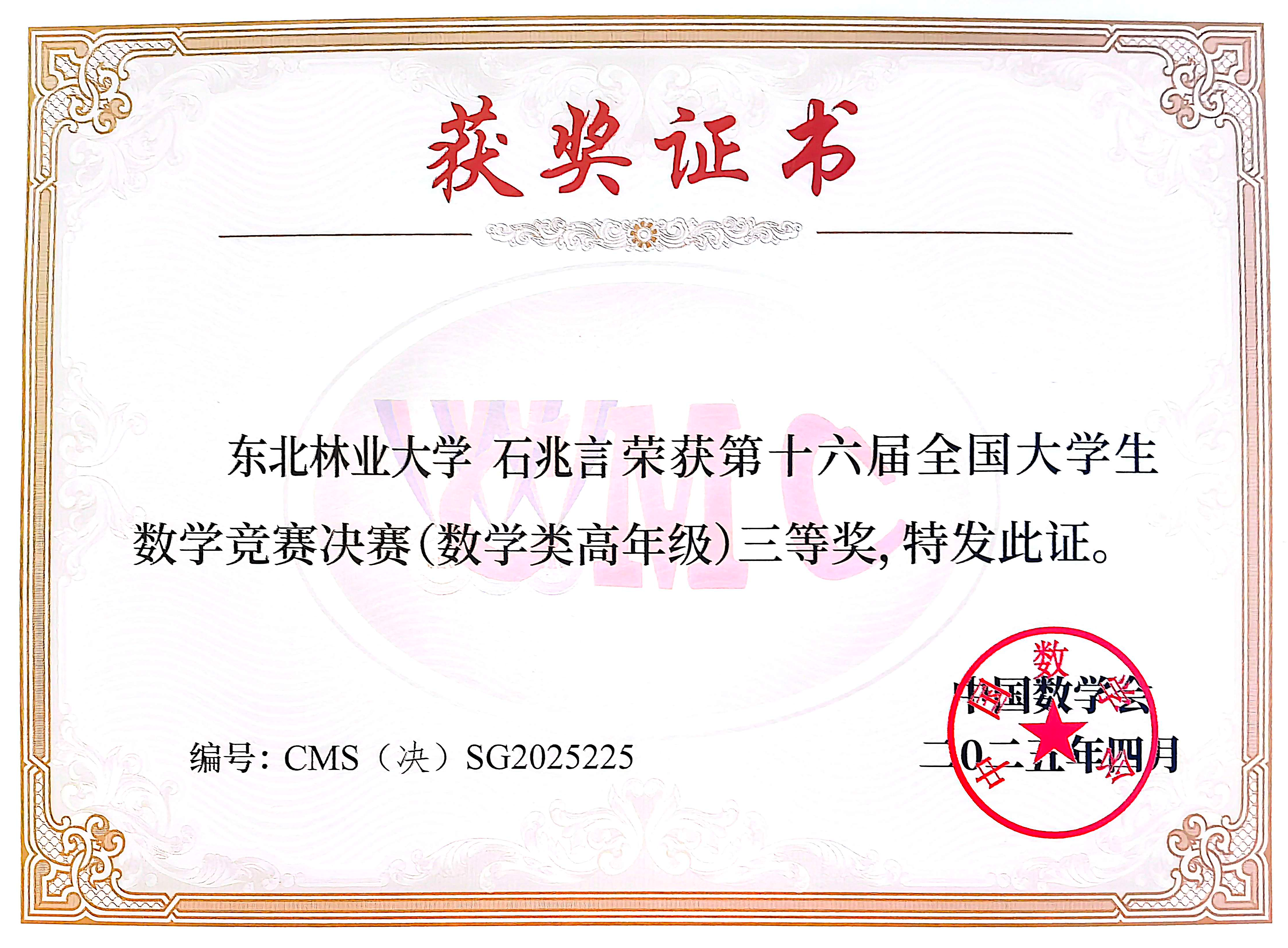 近年来,我校构建了 “以赛促学、教赛相长” 的林业院校数学基础课教学体系,以培养优秀人才为目标,持续深化课程改革,夯实学生数学基础;相关部门及各学院协同联动,形成强大育人合力。数学系组建竞赛指导教师团队,通过有序组织、专项培训、开设公选课程等方式为学生参赛提供专业指导,强化学生数学思维训练,为学生综合素质提升和核心竞争力增强提供坚实支撑。