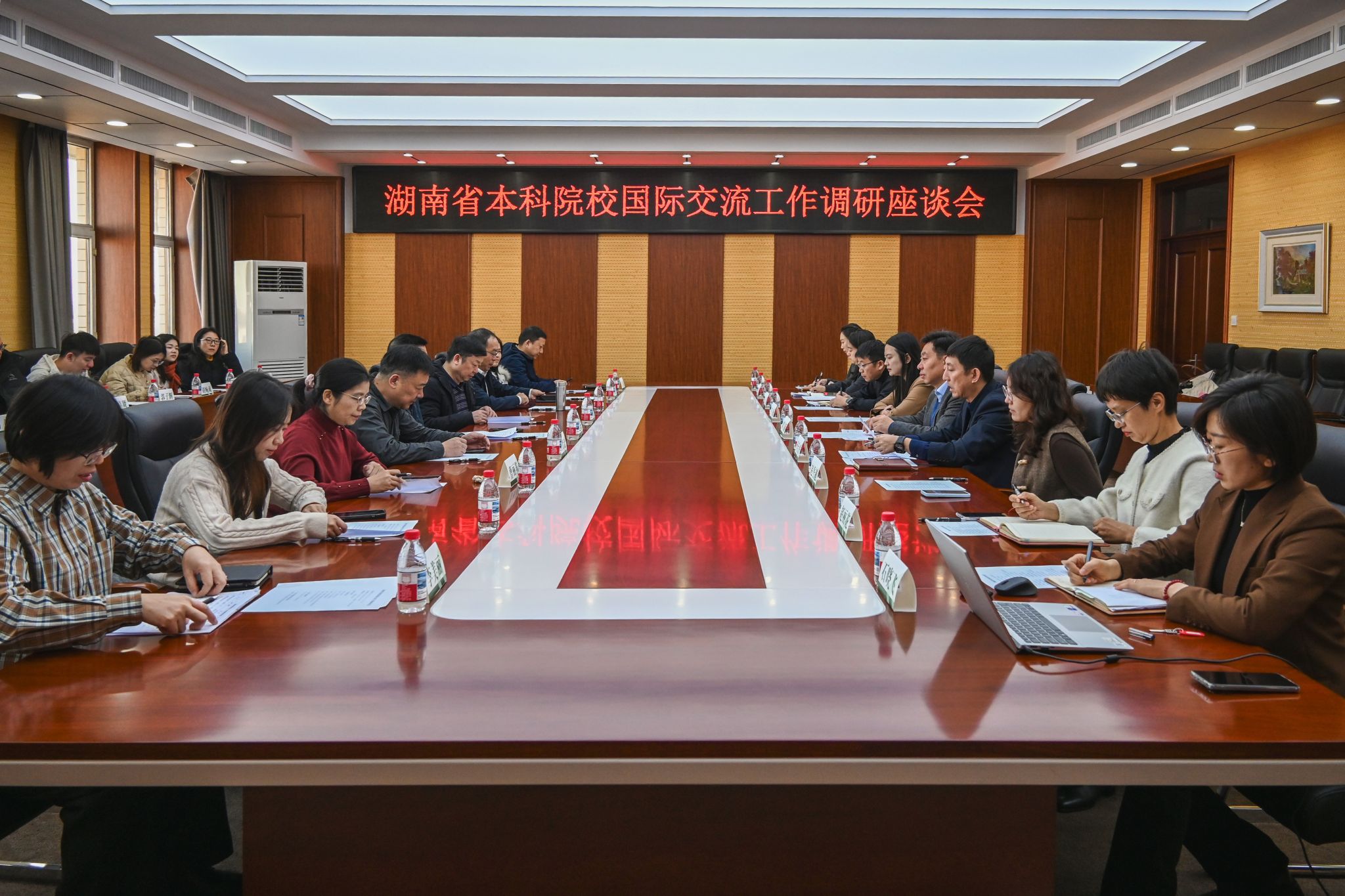 11月28日上午,湖南省教育国际交流协会副会长兼秘书长潘送球与湖南省12所本科院校国际交流工作负责人一行21人来校,就国际交流相关工作进行交流调研。学校党委常委、副校长刘守新出席座谈会,我校星空电竞官网有实力处、国际交流学院、奥林学院相关同志参会。黑龙江省教育厅对外合作与交流处、黑龙江省教育国际交流协会相关负责同志陪同调研。