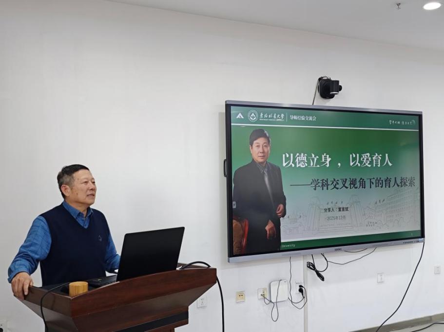 会议邀请机电工程学院董喜斌教授作了《以德立身,以爱育人——学科交叉视角下的育人探索》主题报告。董教授结合42年育人经验,强调学科交叉已成为破解“真问题”、培养复合型人才的核心路径,提出导师要以身示范,保持自身的学术前瞻性,帮助学生在“跨界”中找到学术坐标,引导学生在真实场景中解决复杂问题。