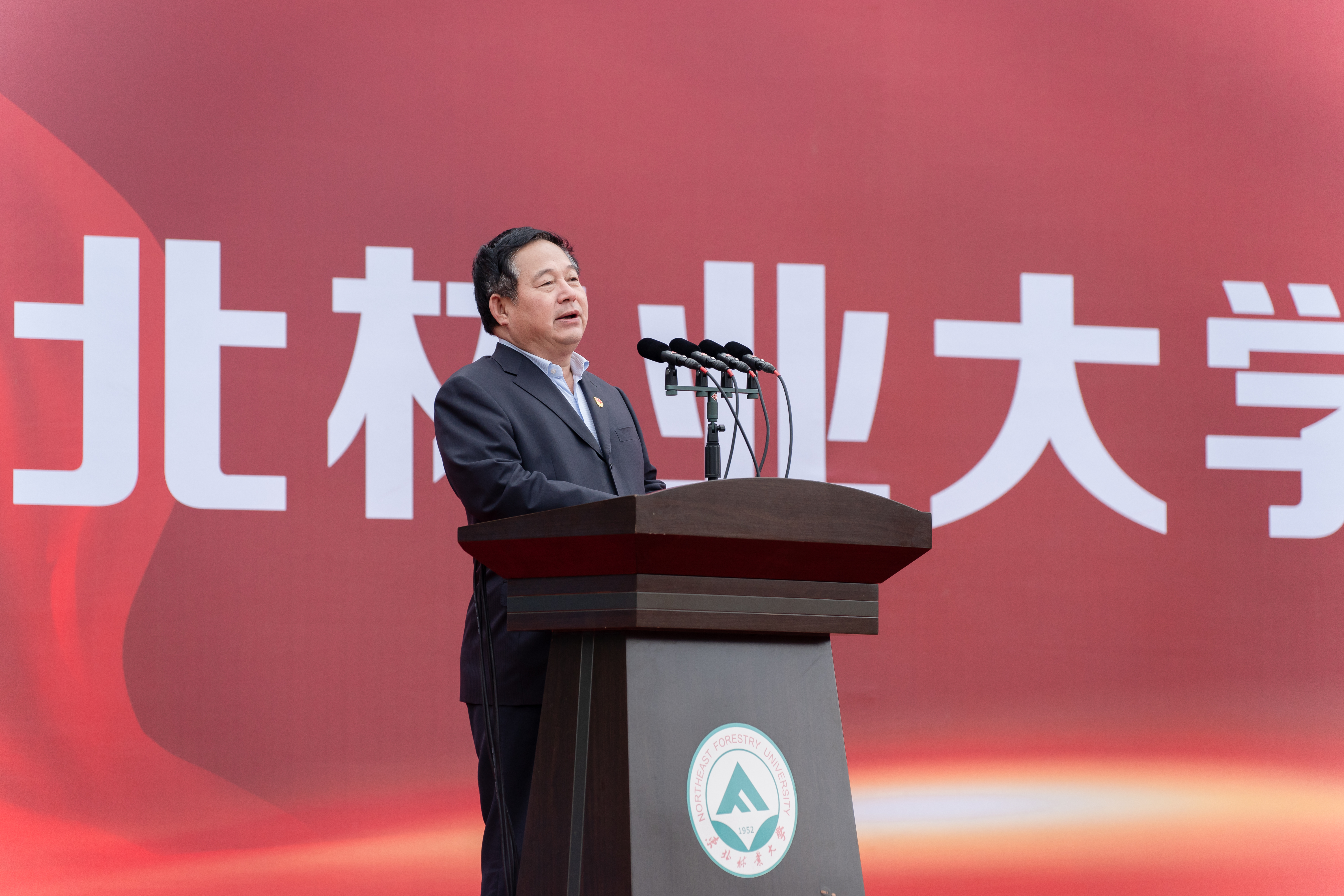 在“国旗下的誓言”环节,材料科学与工程学院教授、2024年“黑龙江省优秀教师”陈文帅代表青年教师发言,他号召全体教师要以老校长、“全国教书育人楷模”李坚院士为榜样,大力弘扬教育家精神,以培养德智体美劳全面发展的林科拔尖创新人才为己任,凝练科学教育理念,不断提升人才培养质量。发挥学科优势,扎根黑土,筑牢北方生态屏障。准确把握“新林科”建设与国家战略、民生需求、社会服务间的关系,坚持以问题导向、国际视野不断拓展科研边界,提升科研成果对龙江经济社会发展的支撑作用。