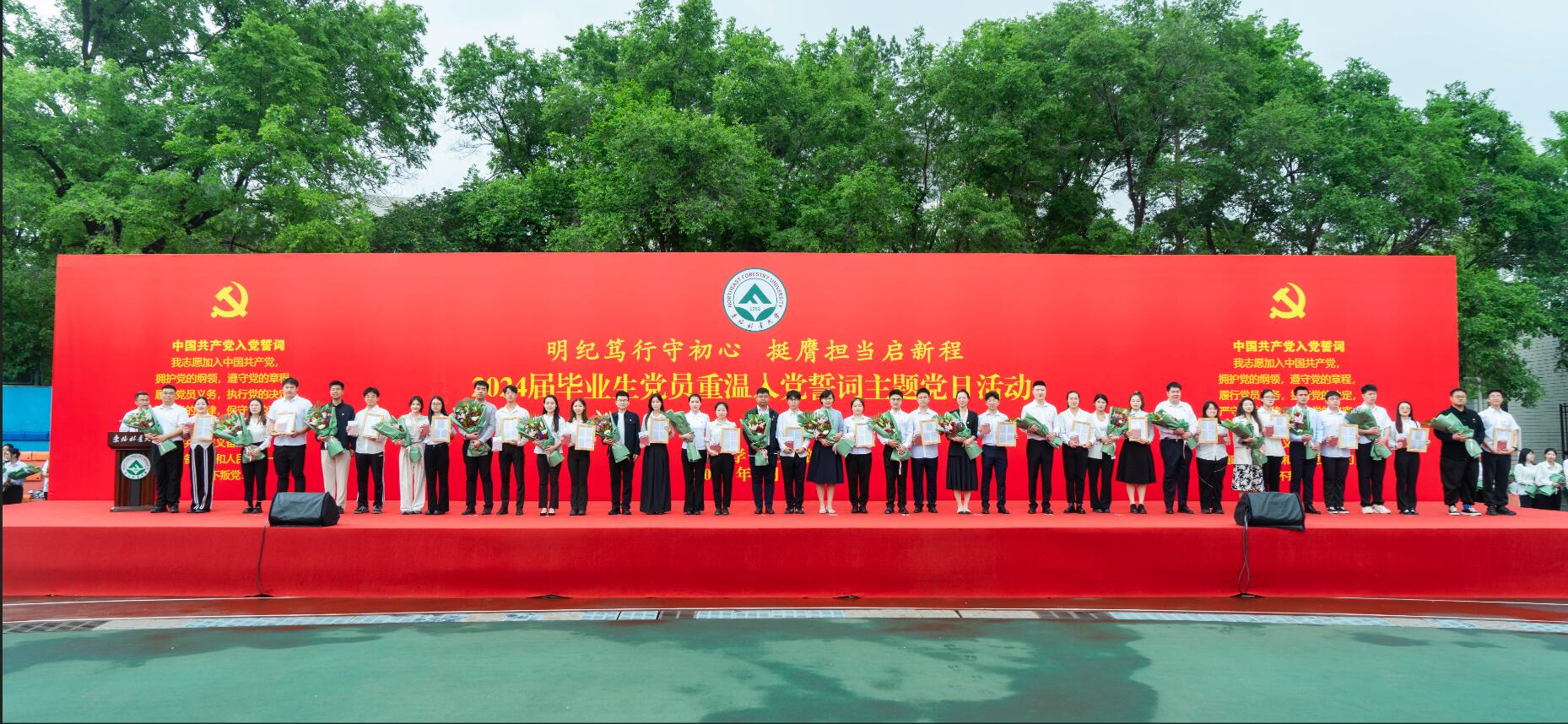 为深入学习贯彻习近平新时代中国特色社会主义思想,在新中国成立75周年之际,6月11日上午,学校在田径场举行了“明纪笃行守初心、挺膺担当启新程”——2024届毕业生党员重温入党誓词主题党日活动。学校党委书记张志坤出席活动并讲授微党课,党委常委、副校长张春雷主持活动。相关职能部门负责人、部分学院党委书记、各学院党委副书记、全体毕业生辅导员和2024届全体毕业生党员共同参加活动。