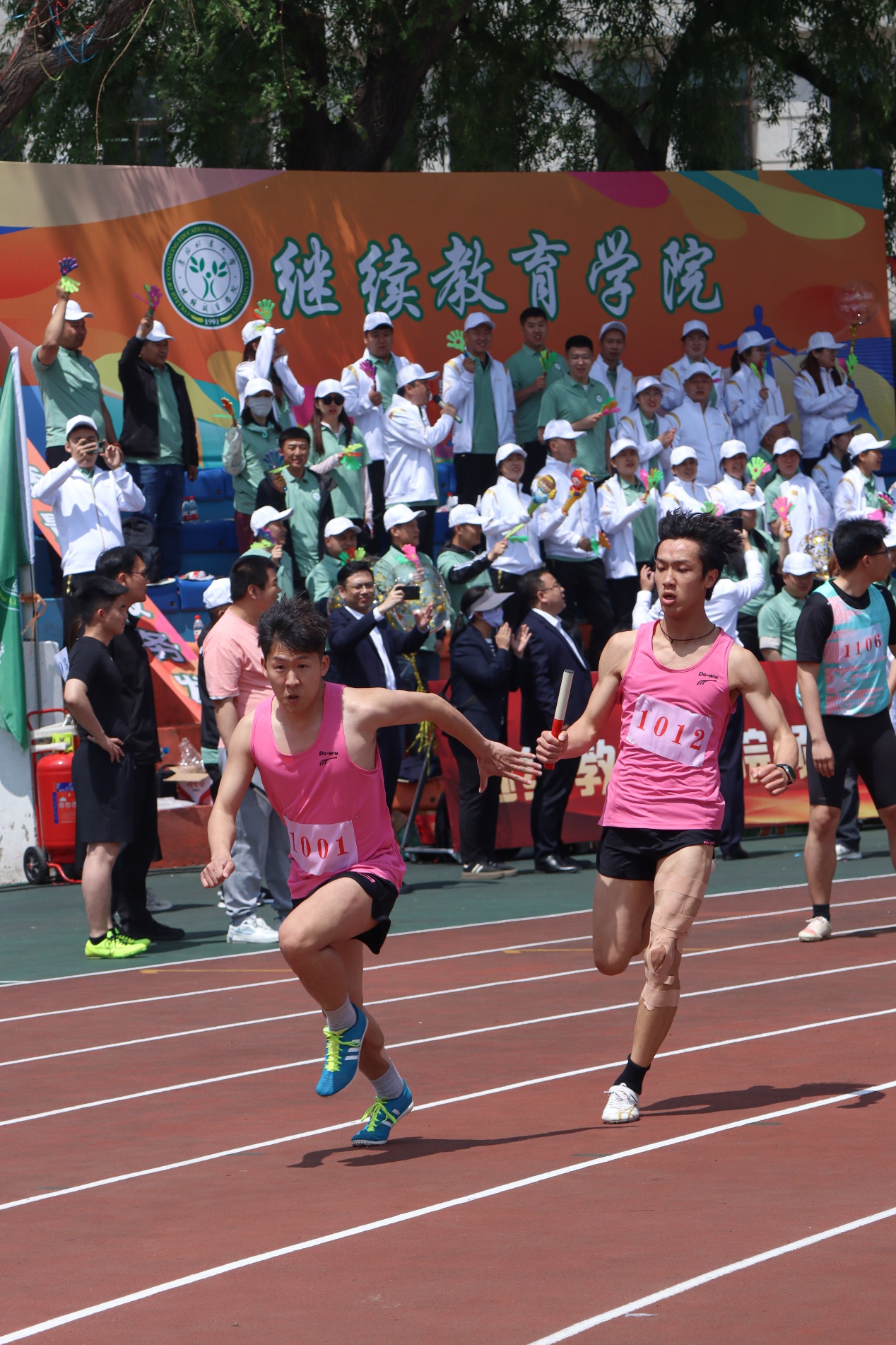本届运动会总裁判长王苏伟宣布了比赛成绩。计算机与控制工程学院获得学生组男子团体总分、女子团体总分、男女团体总分第一名。后勤保障部获得教工组男子团体总分、女子团体总分、男女团体总分第一名。