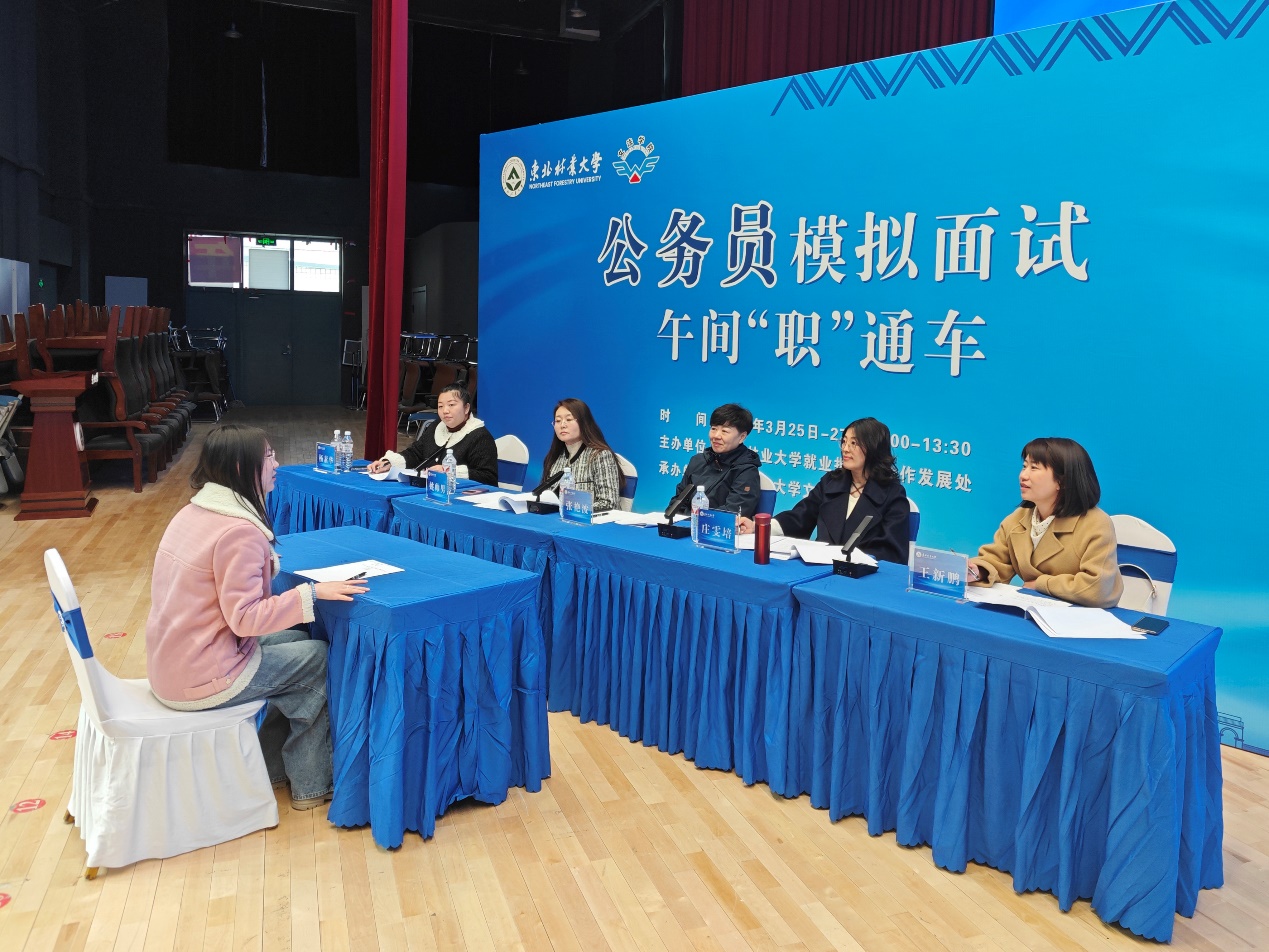 3月25日中午,一场公务员模拟面试在学校科学会堂举行。在现场,学校富有实战经验的老师组成的考官队伍向考生提出了一系列面试问题,包含了基本情况、人际关系、政治思想、组织管理等方方面面,考生们身临其境体验了一次“进面”的感觉。