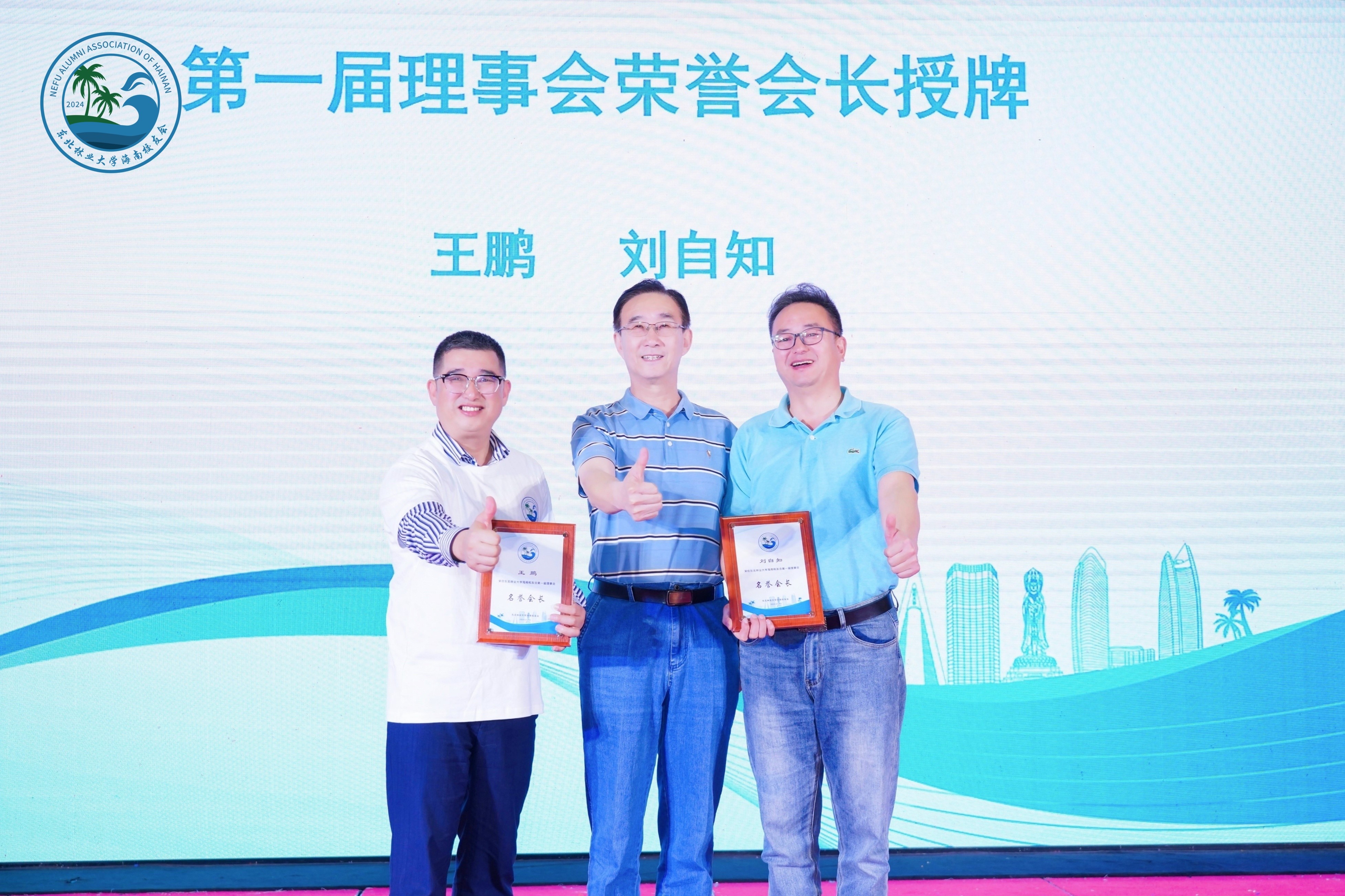 校长宋文龙宣读了海南校友会第一届理事会会长、副会长及秘书长名单,并为新当选的校友代表颁发聘书,授旗揭牌。