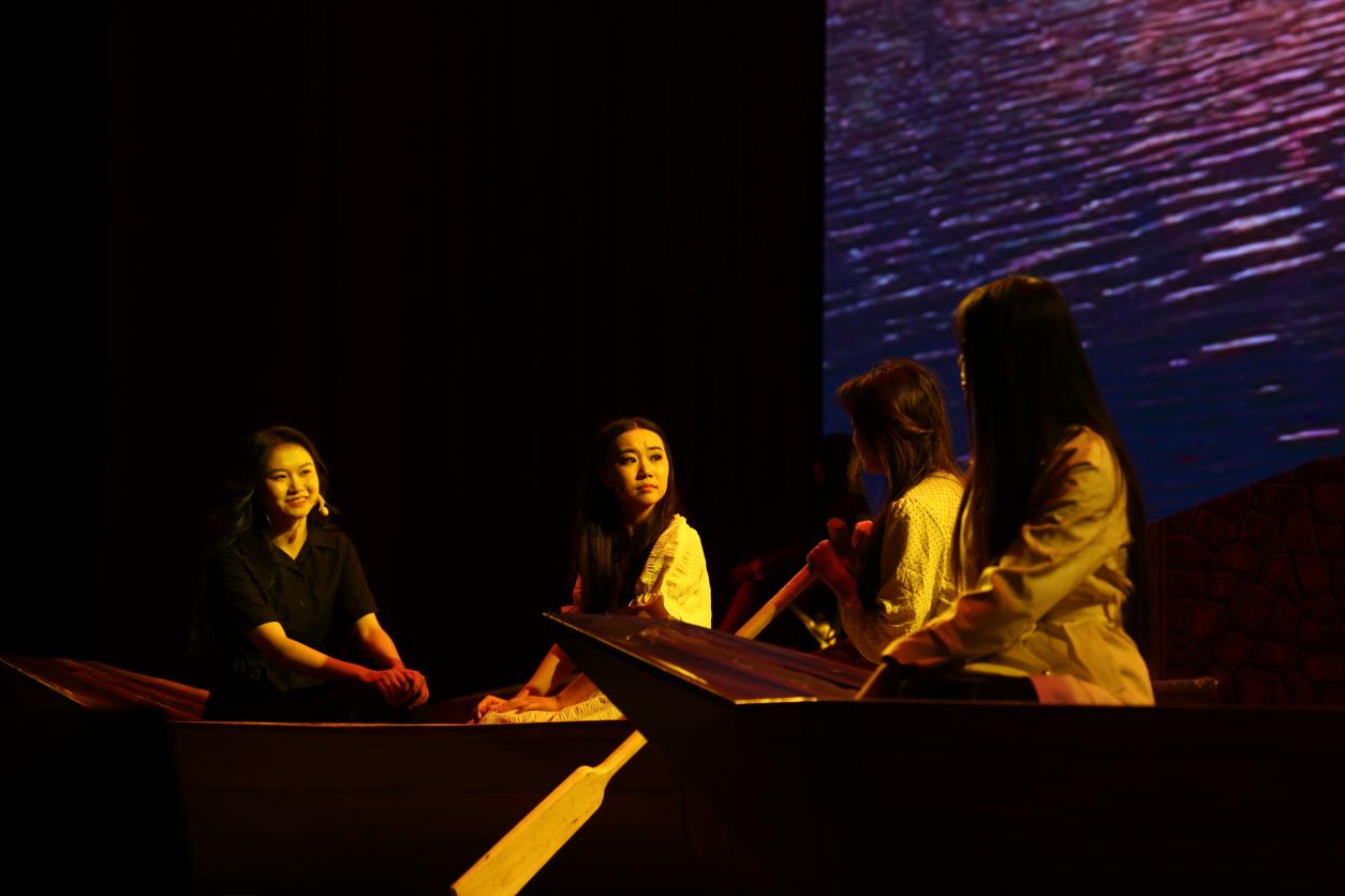“走过那条小河,你可曾听说,有一位女孩,她曾经来过……”随着悠长空灵的歌声,演出正式拉开了序幕。一声声撕心裂肺的呐喊,一道道时隐时现的闪电,一簇簇飘摇摆动的芦苇荡,似乎将观众们又带回了36年前的那个雷雨交加的夜晚。