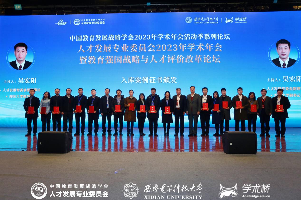 论坛主会场举行入库案例证书颁发仪式,首批来自16家高校的18个案例代表被颁发《中国教育发展战略学会人才发展专业委员会案例中心案例入库》证书。我校《落好精准引才“关键子”下好队伍建设“整盘棋”》《深化改革,立好人才评价指挥棒》《教育评价背景下星空游戏免费版下载职称评价体系改革探索》三篇案例成功入选,是唯一一个多案例入选的高校。