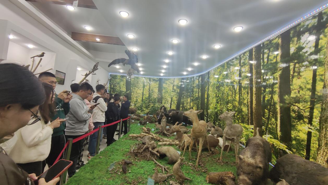 在凉水实验林场场长于纪航和办公室主任孙虎的带领下,全体新教师穿越原始森林,深入大山,与大自然展开亲密接触。孙虎为教师们详细讲解了小兴安岭生态文明建设的点点滴滴,并组织了一场消防演练。通过活动,教师们充分认识到了森林防火的重要性,加深了守护原始森林的责任感和使命感。在参观场部展室时,于纪航从植被类型、自然资源、生态文明教育、历史沿革与管理等方面,向教师们详细介绍了凉水自然保护区。标本室里,种类繁多的菌类、形态各异的兽类和见证历史的百年树木引来教师们的阵阵惊叹。教师们不仅深入体验了苍翠朦胧、幽深神秘的林海景观,更是深刻理解了“以保护为基础,以科学研究为中心,保护、科研、宣教相结合”的凉水精神。