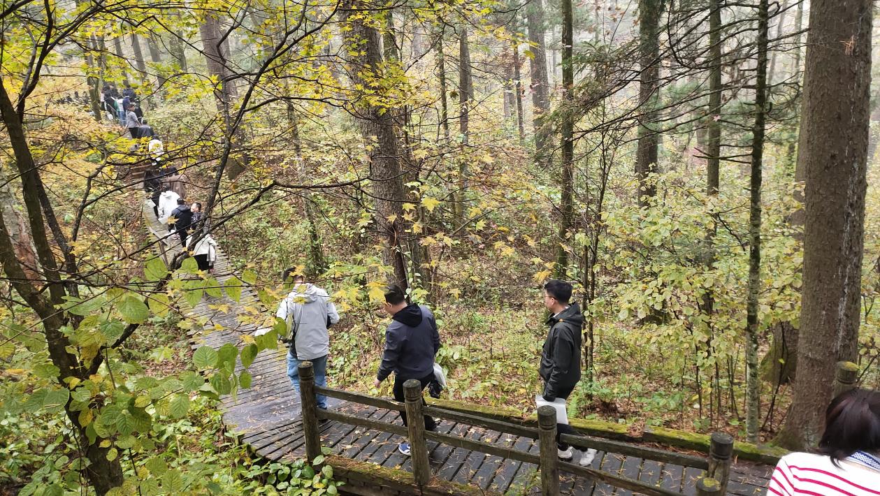 生态文明实践课程主讲教师黄颖利教授向教师们解读了东林的精神谱系和生态文明文化。黄颖利强调,森林“四库”一头连着国家战略,一头连着百姓福祉,是“国之大者”,也是民生关切,更是林草人的责任担当。教师们沿着“少奇小道”向森林深处进发,登上防火瞭望塔俯瞰雾气笼罩下的苍山林海,踏上科普宣教栈道体验原始森林的野性魅力。“守护绿水青山,铸牢生态屏障,勇担绿色使命,建设美丽中国”的口号声响彻在凉水上空,也浸润在新教职工心间。