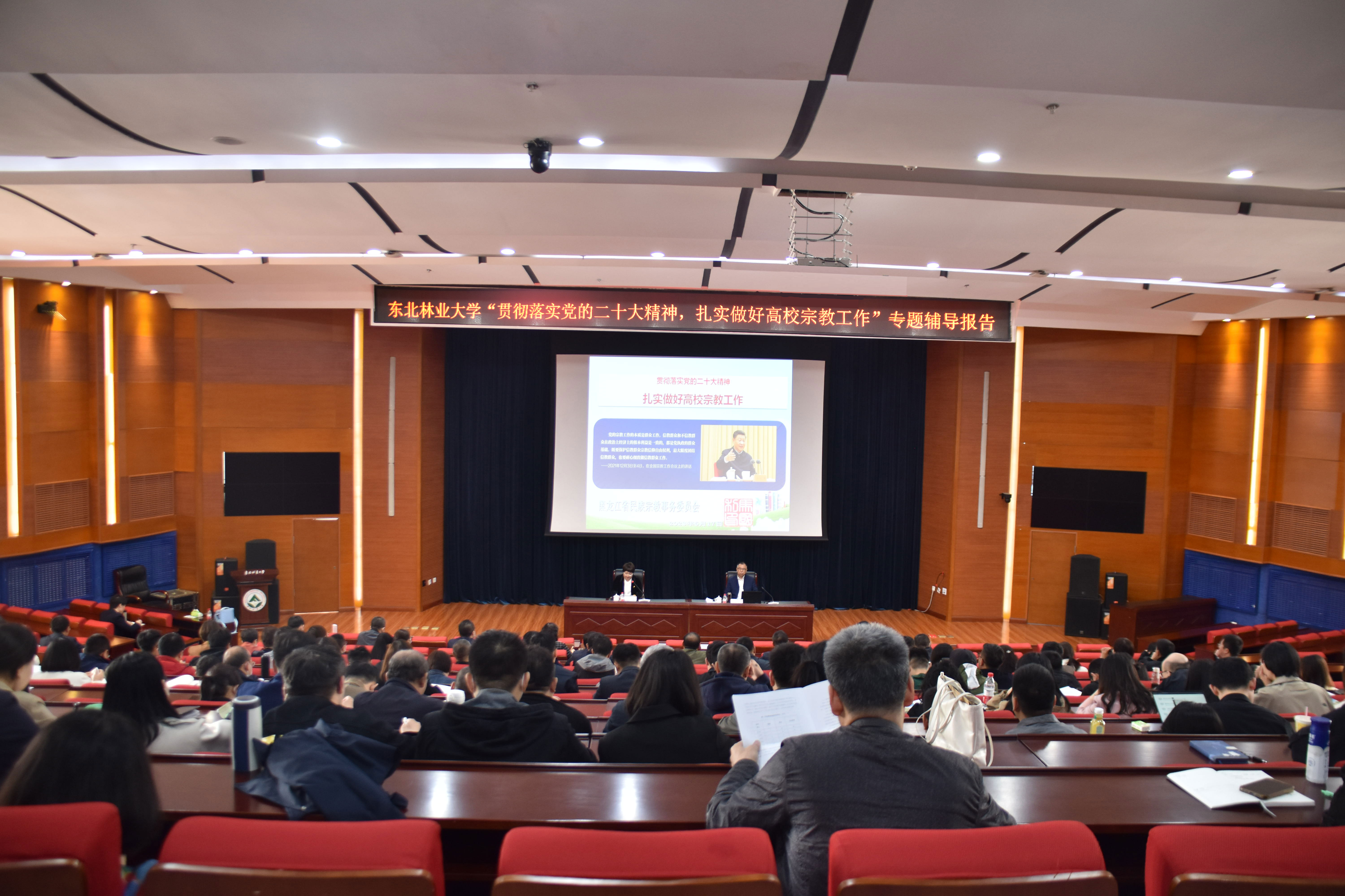 为贯彻落实党的二十大精神,提高学校学生政工干部队伍、思政课教师队伍以及党政干部队伍做好宗教工作的能力,推动主题教育理论学习走深走实,5月17日上午,学校邀请黑龙江省民族宗教事务委员会党组成员、副主任马国利,在成栋楼会议厅作了题为《贯彻落实党的二十大精神,扎实做好高校宗教工作》的专题辅导报告。学校民族宗教工作领导小组成员单位负责人,各二级党组织书记、统战委员,专职思政课教师,学生政工干部,机关全体中层干部200余人参加了会议。党委统战部常务副部长李文秋主持会议。
