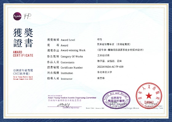 近日,由青年人文出版社、亚洲青年艺术设计网、亚洲青年新秀奖赛事组委会主办的2022亚洲青年新秀奖(秋季赛)公布成绩,由我校机电工程学院工业设计专业陈子墨等同学设计的作品摘得全场最高奖——特等奖。