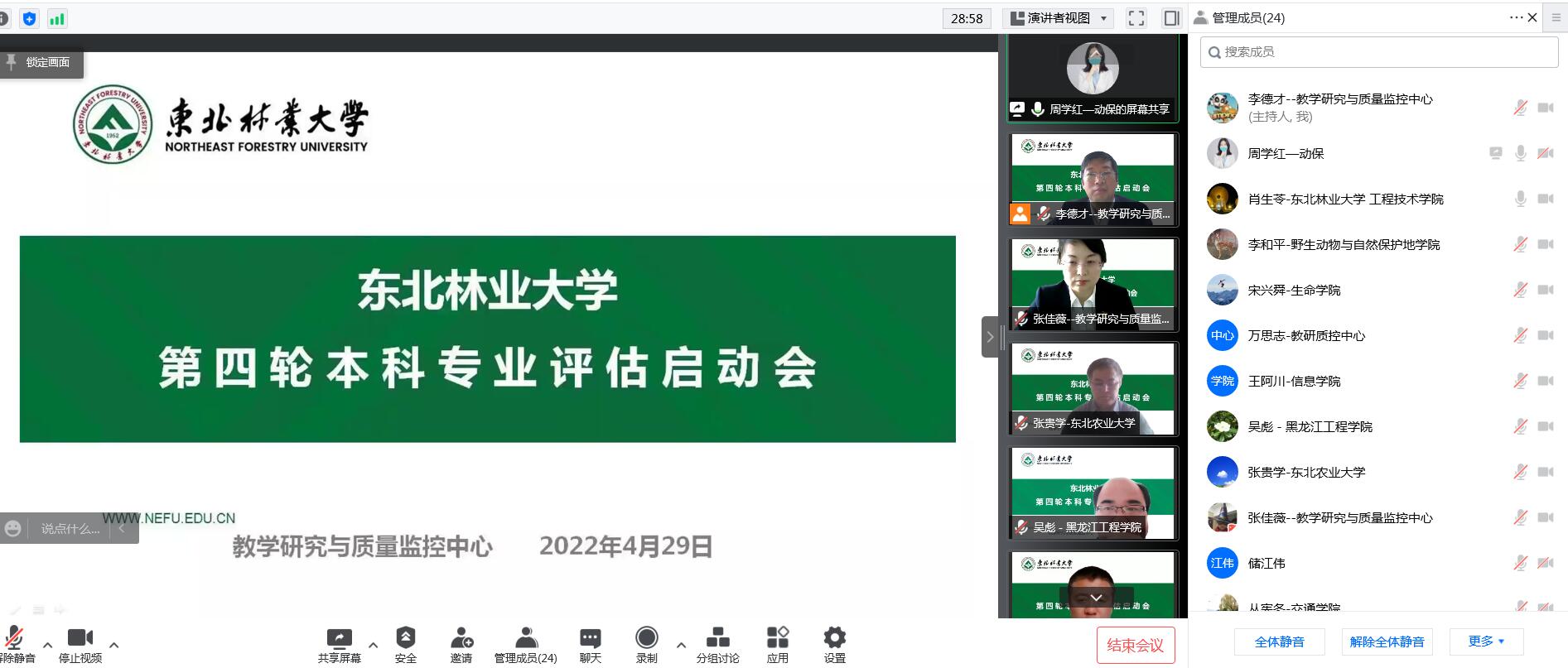 本科专业评估是教育评估的重要环节,是加强本科教学质量保障与监控体系建设的重要措施。为进一步强化专业建设质量,把握本科专业办学和发展方向,4月29日下午,学校召开了第四轮本科专业评估启动会,本次会议采取线上形式。评估专家组成员肖生苓教授、宋兴舜教授、张贵学教授(东北农业大学)、吴彪教授(黑龙江工程学院)、李和平教授、王阿川教授以及参加专业评估所在学院相关领导、专业负责人、教师代表和教学研究与质量监控中心部分人员参加了会议。会议由教学研究与质量监控中心副主任李德才主持。
