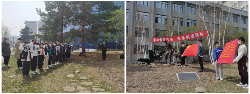 徐秀娟烈士雕像前,全体人员肃立瞻仰雕像,团员代表细心拭去雕像上的尘土。主持人深情介绍了徐秀娟烈士从养鹤、护鹤、寻鹤到为鹤献身的感人故事,并号召大家要弘扬徐秀娟烈士勤于学习、艰苦创业的传统本色;善于创新、爱岗敬业的革命精神;勇于担当、团结奋斗的优秀品德;乐于奉献、公而忘私的崇高境界。