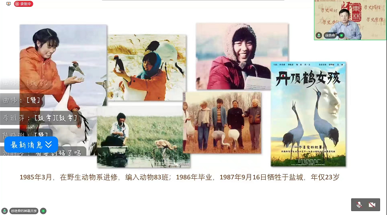 4月22日下午,野生动物与自然保护地学院教授徐艳春做客第四期《东林师说》校庆特辑,以“为祖国护苍生:家传、使命、忠义、担当”为题目,线上为千余名师生深情讲述了东林人“为祖国护苍生”的传奇故事。