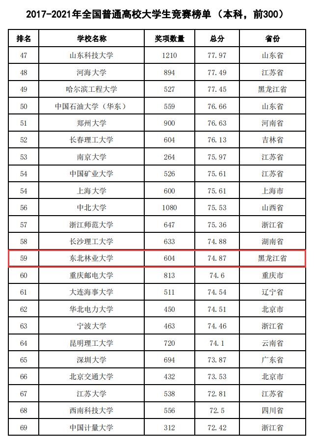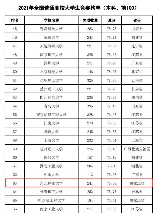 中国高等教育学会自2017年2月启动《高校竞赛评估与管理体系研究》项目以来,已经连续发布六轮榜单,这是我国第一个专注高校创新人才培养暨学科竞赛成果的排行榜,是检验高校人才培养质量的重要途径,自发布以来,得到了社会的高度关注。为从更长时期了解各高校大学生竞赛发展态势,研究工作组今年发布了“六轮总榜单”,时间跨度从2012年到2021年,我校以总分73.42,位列全国第63位。