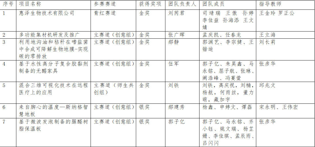8月25至26日,由黑龙江省教育厅主办的第五届中国“互联网+”大学生创新创业大赛黑龙江赛区决赛在哈尔滨师范大学举行。经过两天竞赛的激烈角逐,由我校学生郝静所带领的“利用地沟油和秸秆在嗜盐菌中合成可降解生物地膜—实现碳的零排放”创新创业团队项目,在黑龙江省总决赛12强冠军争夺赛中荣获季军。同时,我校学生张广晖团队的“能集材机研发及推广”创新创业项目 、伍军团队的“基于水性高分子复合胶黏剂制备的无醛家具”创新创业项目 、刘铁团队的“混合三维可视化技术在远程医疗上的应用” 创新创业项目以及刘芮君团队的“惠泽生物技术有限公司”创新创业项目分获主赛道和“青年红色筑梦之旅”赛道金奖。