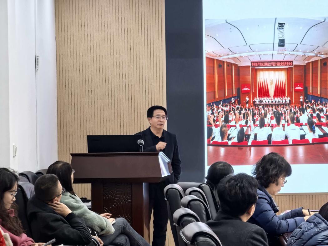 侯彦杰强调,要把深入学习贯彻学校第十四次党代会精神作为全院上下的首要政治任务,一是强化思想引领,在深学细悟中推动党代会精神与教学、科研、管理等各项工作有机融合,切实做到入脑入心、见行见效;二是聚焦学科特色,依托人文社科优势,围绕生态文明建设开展交叉研究,深度融入学校“林工交叉、林理支撑、林文相融”的学科体系布局;三是主动担当作为,要切实发挥主人翁精神,主动融入学校“十大强校行动”和学院发展进程,在服务学校发展大局中展现文法担当。