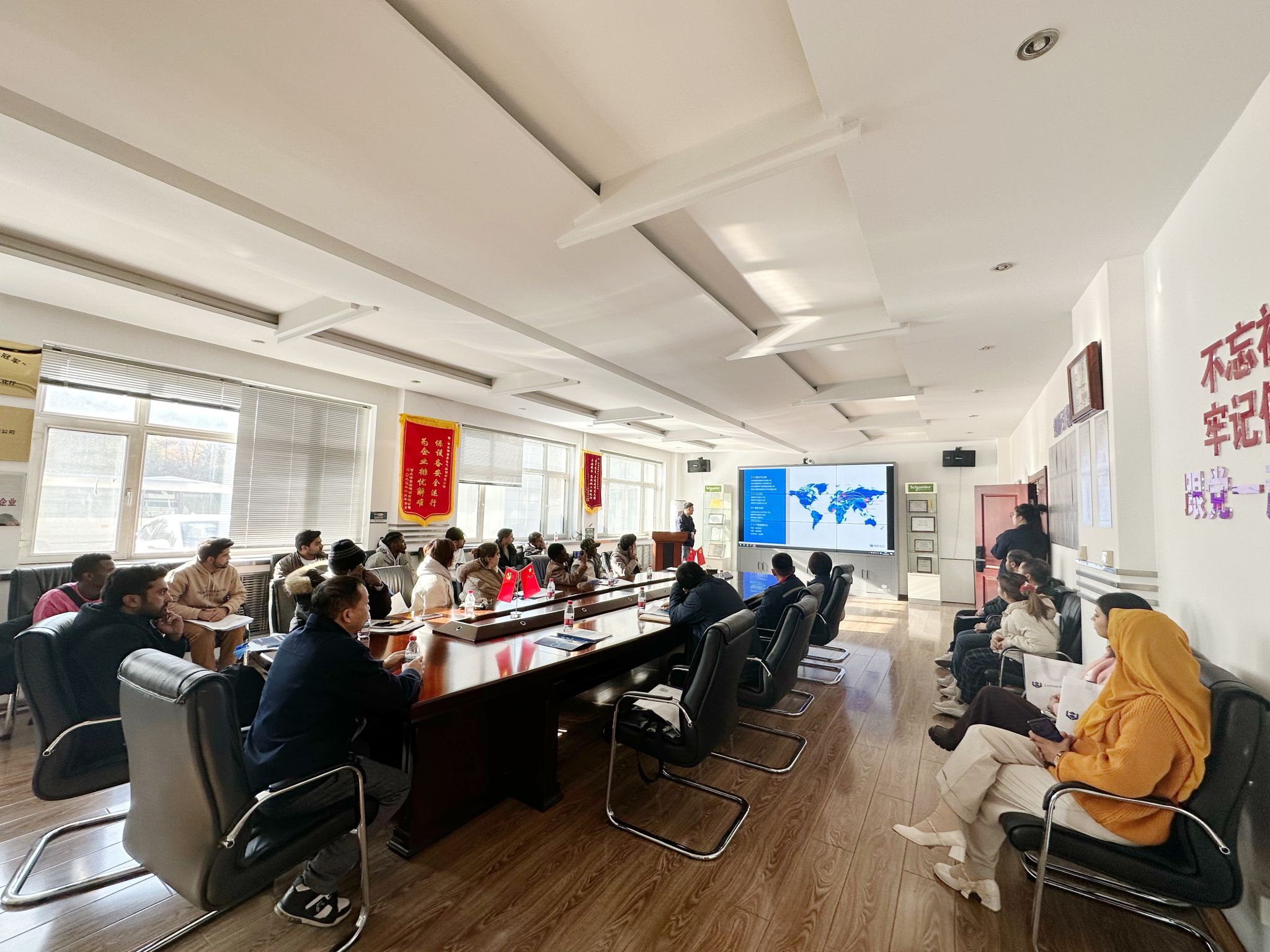 10月24日上午,来自10余个国家的20余名留学生走进哈尔滨朗昇电气股份有限公司,零距离感受黑龙江高端装备制造业的创新活力。公司执行总经理周红洋对师生们的到来表示热烈欢迎。他表示:“作为龙江本土培育的高新技术企业,我们很高兴向未来世界的建设者们展示中国智造的真实面貌。”