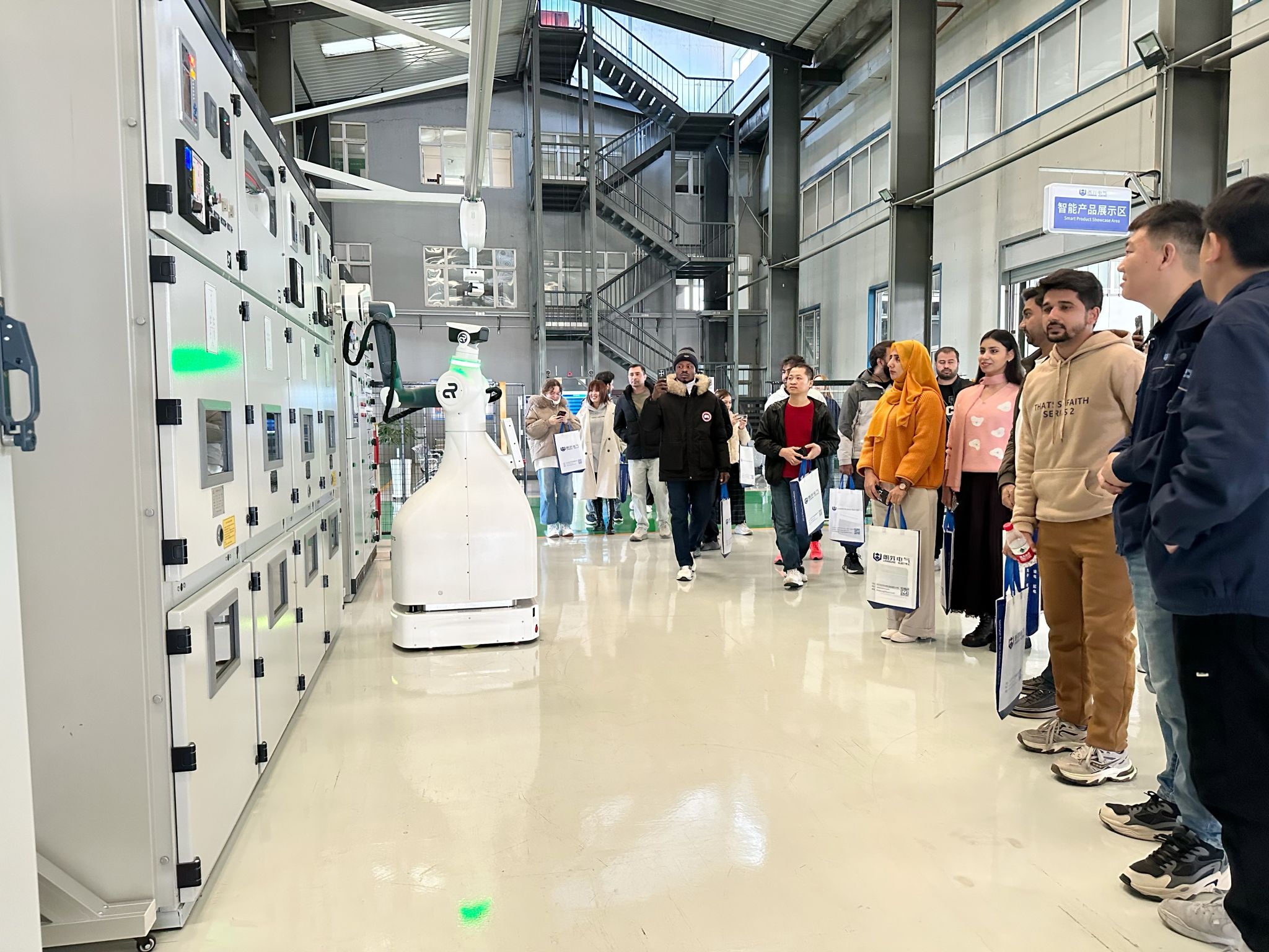 留学生们不时驻足提问、拍照探讨,尤其对智能巡操机器人等创新产品表现出浓厚兴趣。得知朗昇电气在尼日利亚设有海外公司后,尼日利亚博士研究生丹尼与海外事业部部长姜广春互留联系方式,表达了毕业后加入海外公司、为两国合作贡献力量的意愿。
