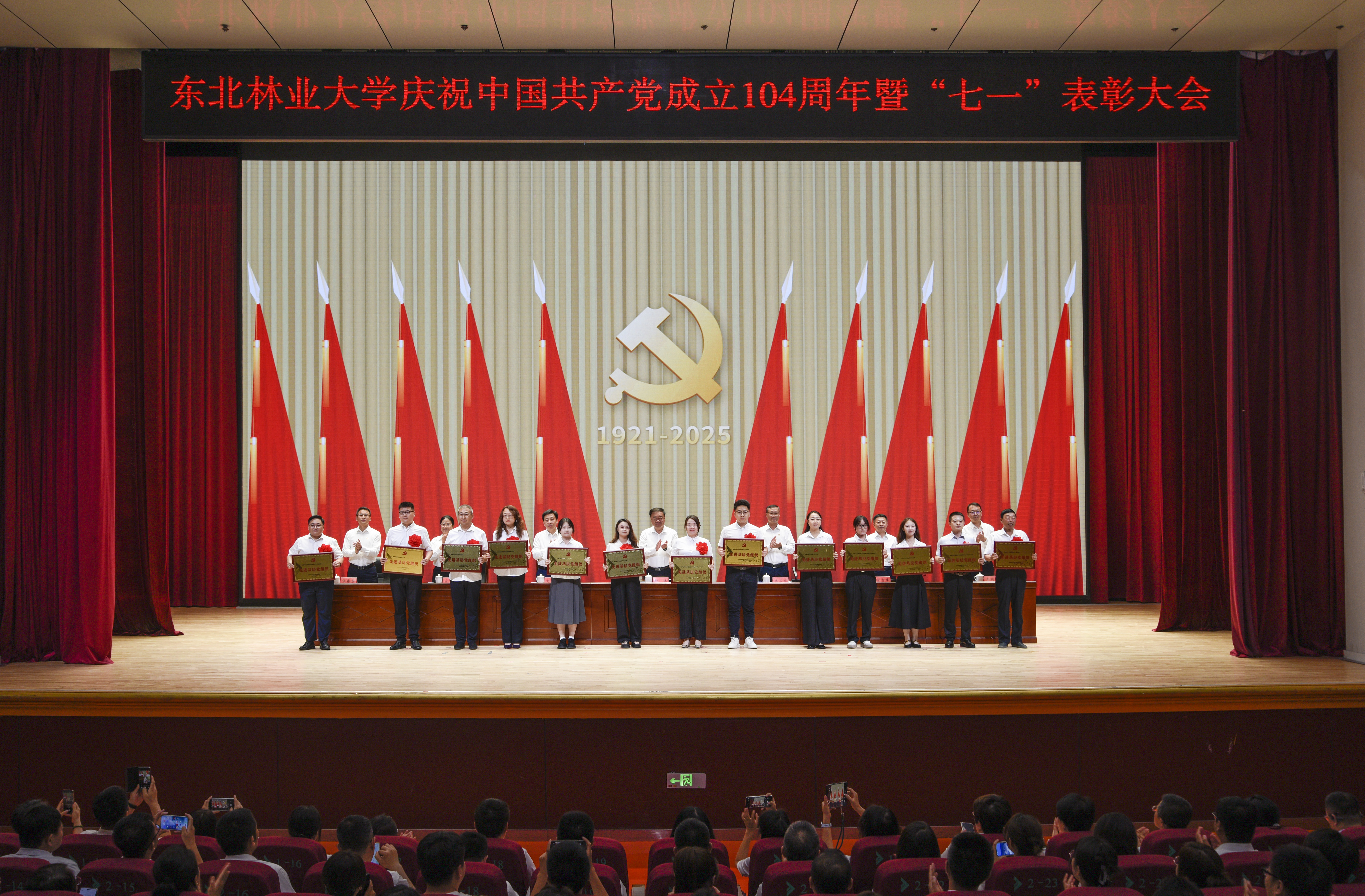 校领导先后为学校2023-2025年度103名优秀共产党员、23名优秀党务工作者和22个先进基层党组织代表颁奖。
