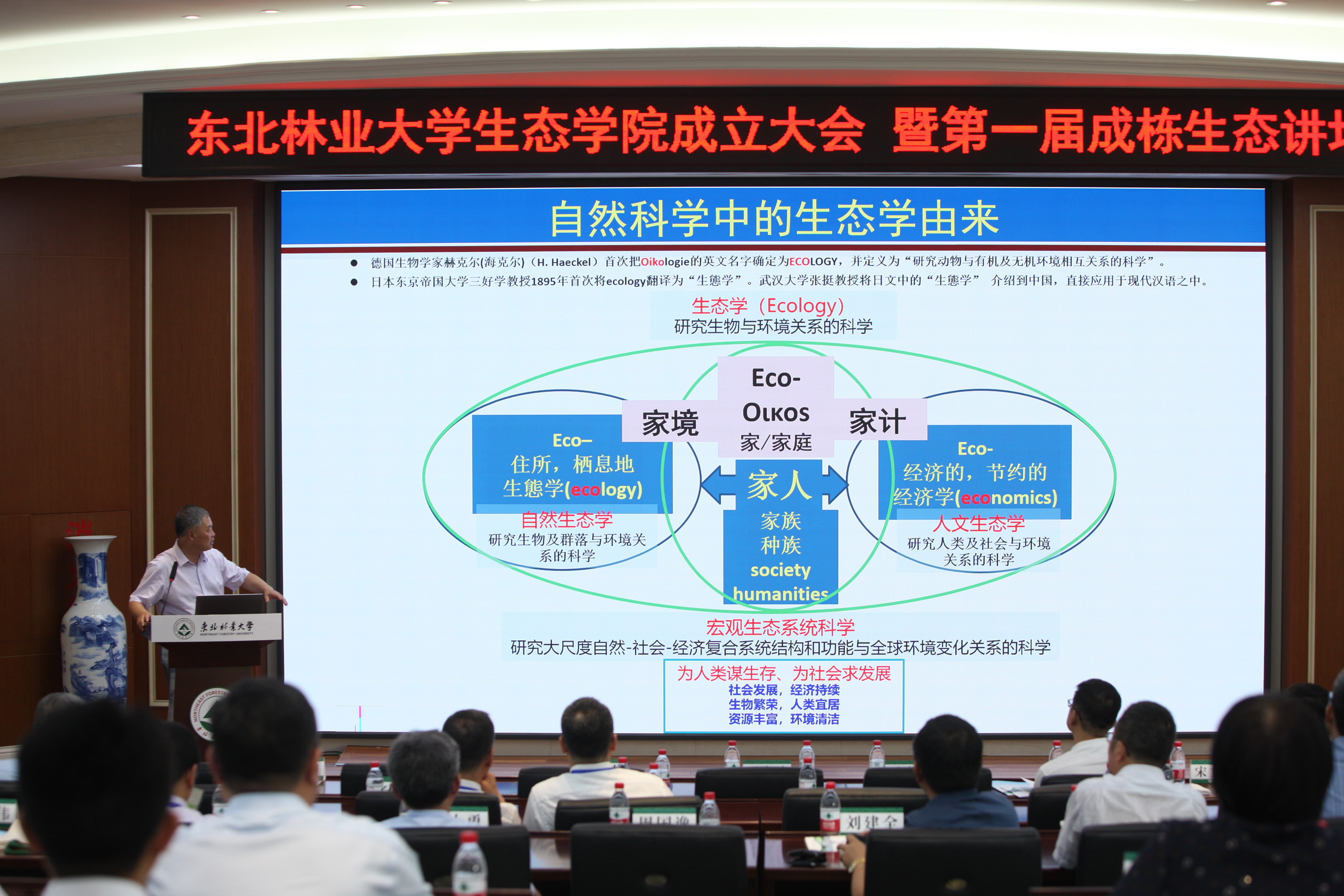 国务院生态学科评议组副组长吴文良,中国生态学会理事长、中国科学院院士于贵瑞,黑龙江省林业和草原局党组书记、局长侯绪珉,知名校友代表、中国工程院院士刘世荣分别致辞,表达了对生态学院成立的祝贺和对学院培养生态学领域栋梁之才、服务生态文明建设、助力东北全面振兴、助力龙江绿色发展的期待。