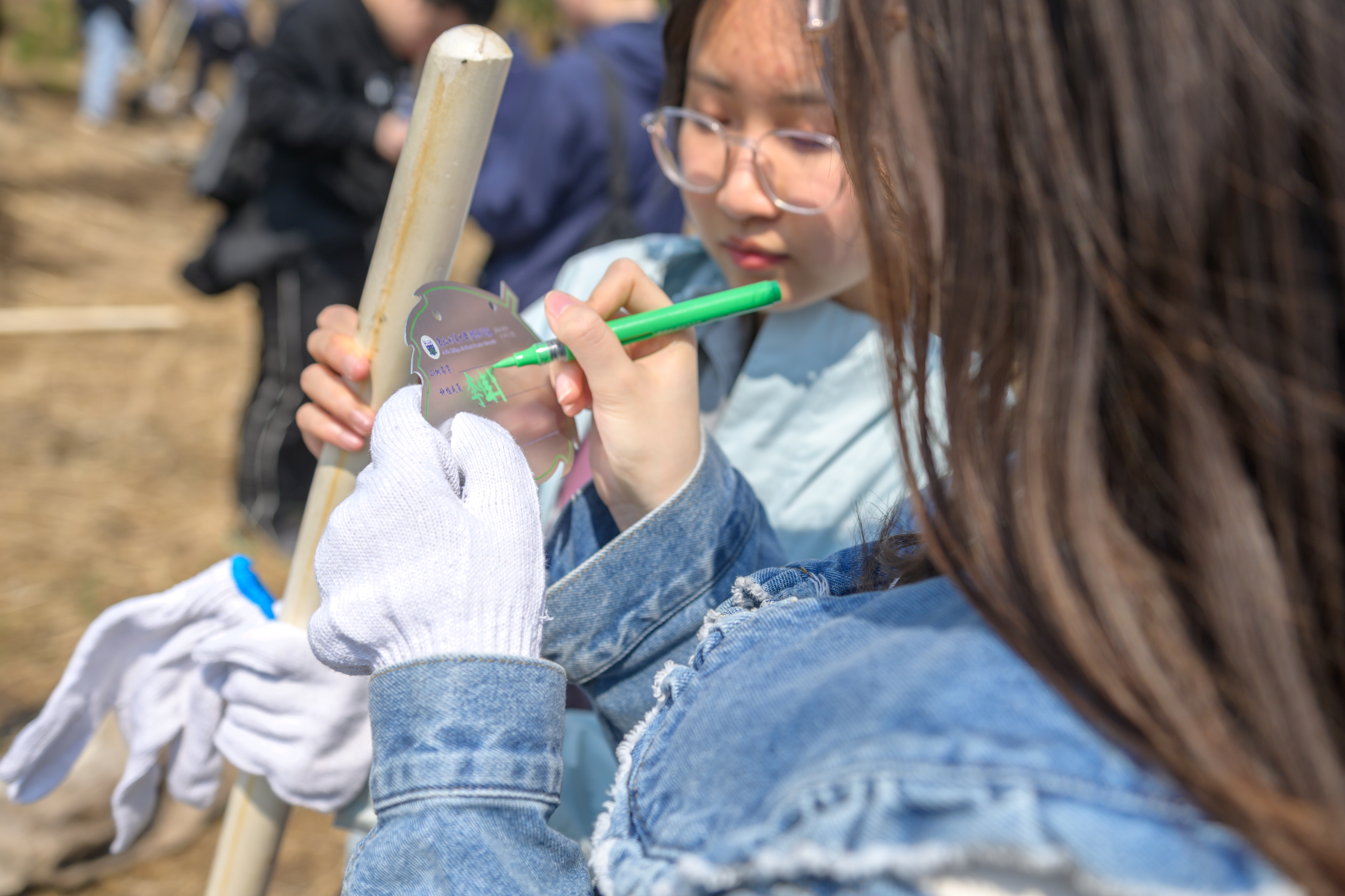 植树后,学生们亲手为种植树木悬挂专属“身份证”,用青年的笔触表达了对绿色发展的深刻理解和坚定信念。